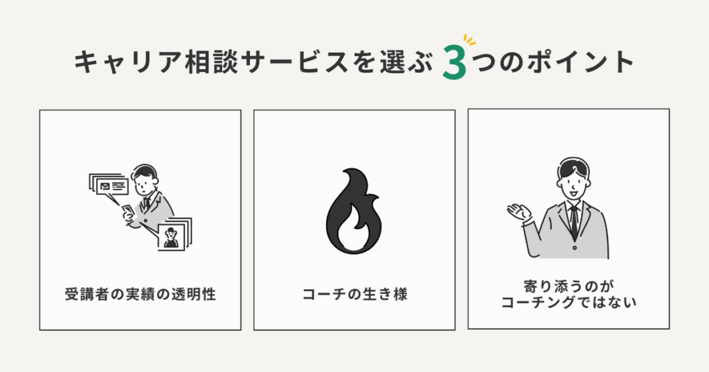 キャリア相談サービスを選ぶポイントは、次の3つです。