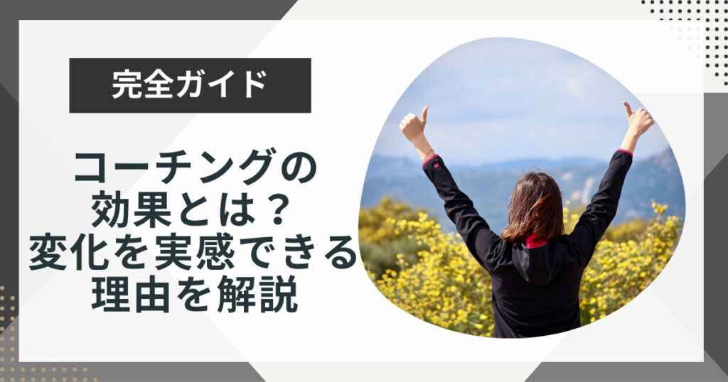 この記事のまとめ 「コーチングってどんな効果があるの?」「自分を変えられるの?」 コーチングで実感できる効果や人生の変化を徹底的に解説します! 「コーチングって怪しくない?本当に効果あるのかな……」「コーチングを受けるメリットって何なの?」「...