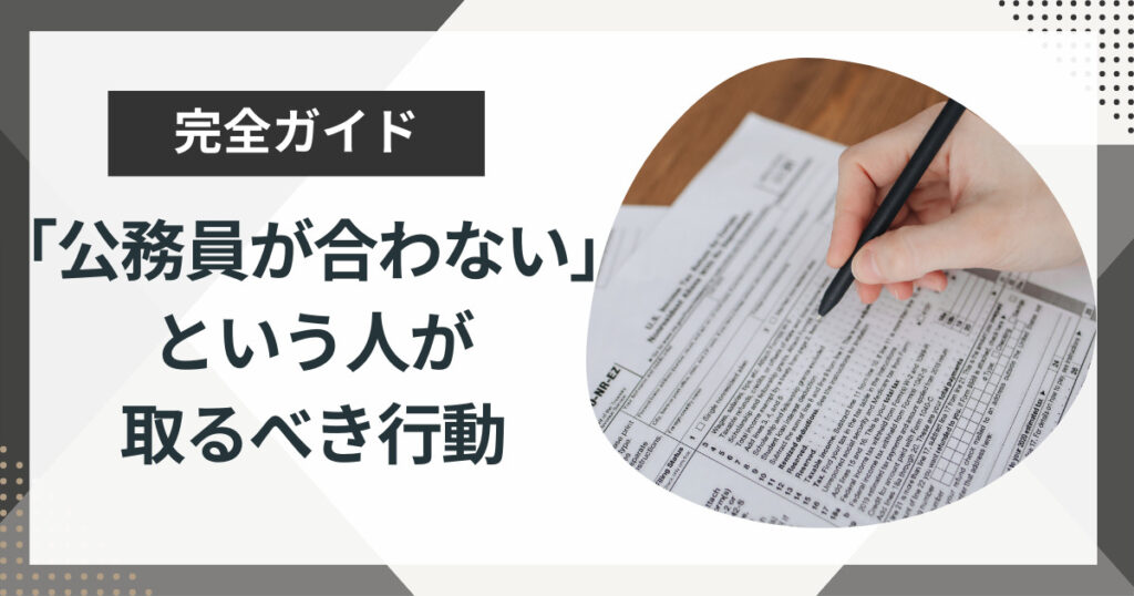 この記事のまとめ 公務員の仕事が合わないなら考えることはたった1つ! 「せっかく公務員になったのに辞めていい?」「公務員が合わないのは甘え?」 公務員の仕事が合わないと感じたときにやるべきことを徹底解説! 「公務員の仕事が合わない.....」「せ...