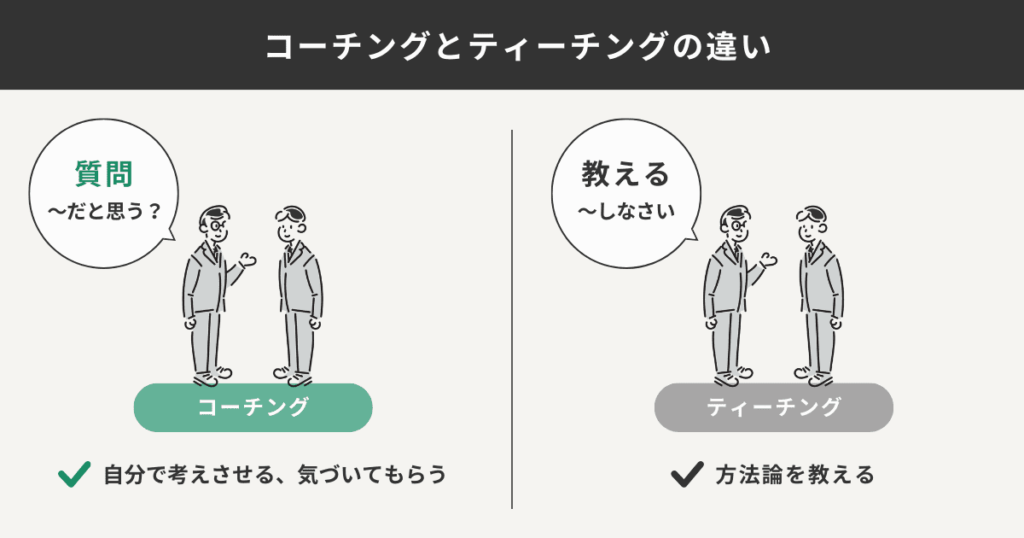 一方で、ティーチングは1つの正解や方法論を教えられるもの。