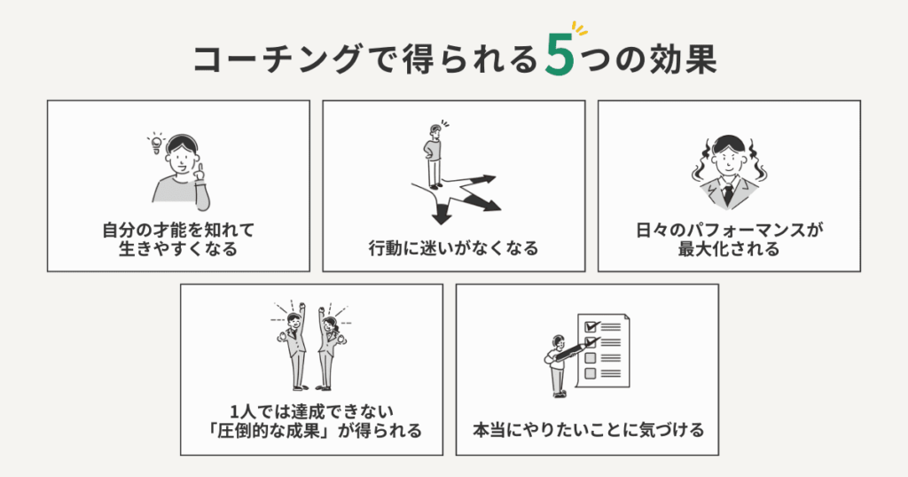 コーチングでは、以下のような圧倒的な効果が得られます。