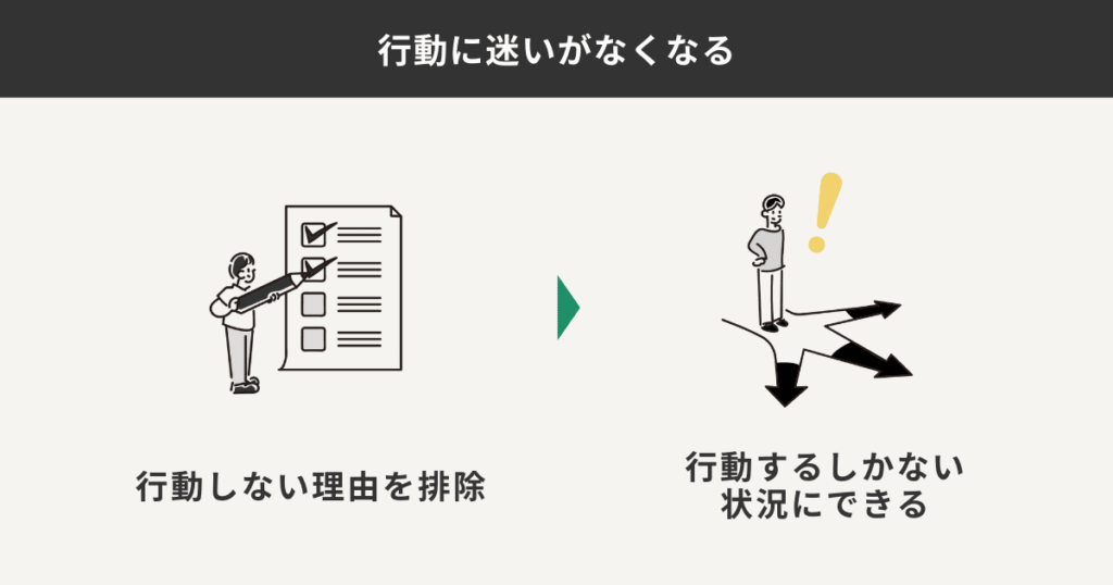 「行動しない理由」を排除し、行動するしかない状況にできるからです。