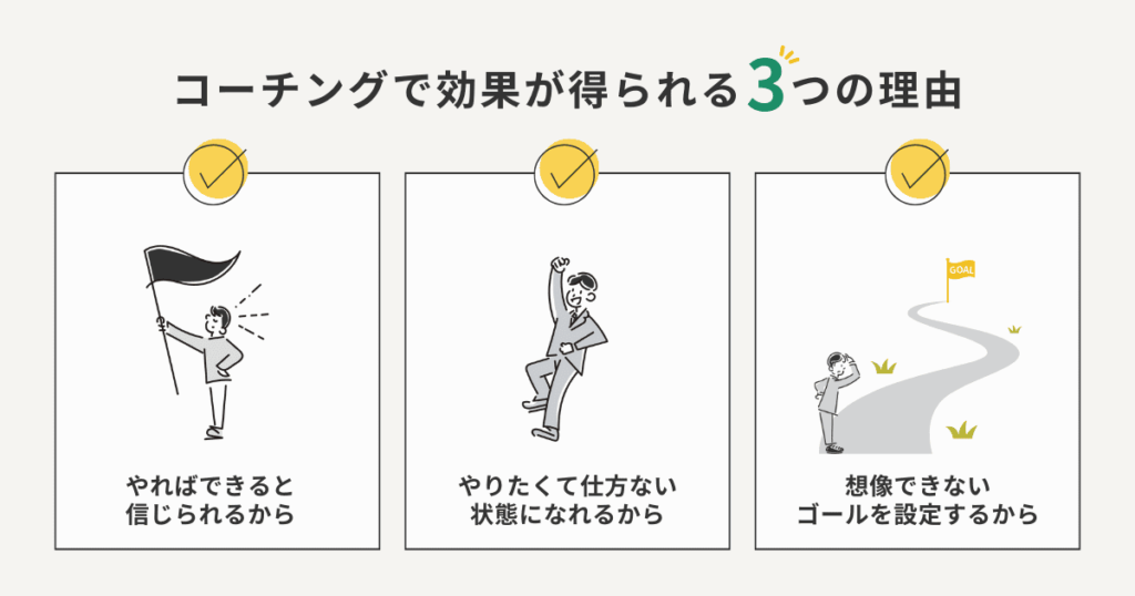 また、コーチングを受けると必ず成果が得られるとは限りません。