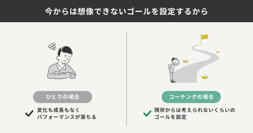 コーチがあなたを客観的に見て、「まだいける!」というラインで行動を促してくれるからです。