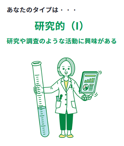 | I (Investigative) – 研究的タイプ | 分析的で好奇心が強く、理論やデータに基づいた問題解決を好む人。 科学的な探求や知識を深めることに興味がある。 | 科学者 研究者 データアナリスト 医師 |