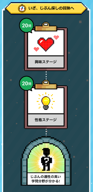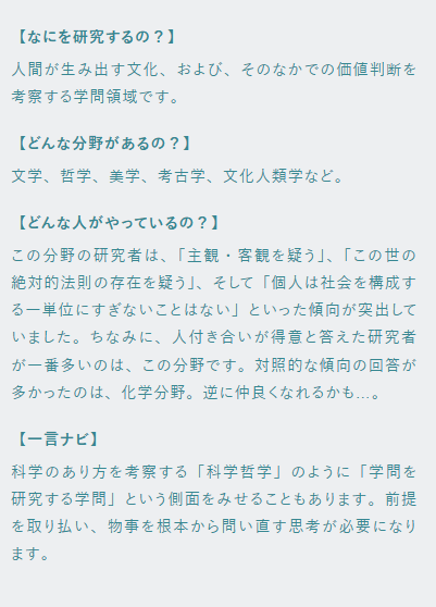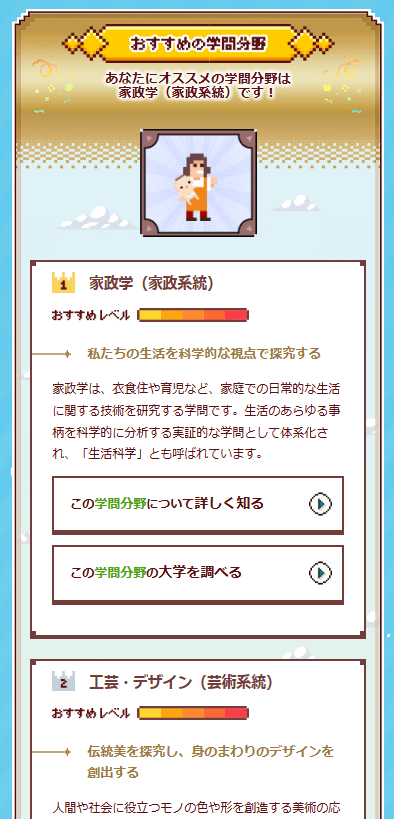興味のある学問を特定するための診断ですが、好きなことを大まかな分野から特定するのにも有効です。