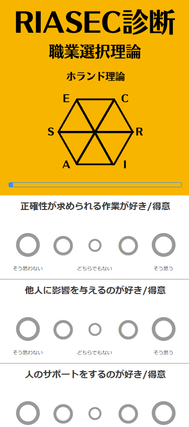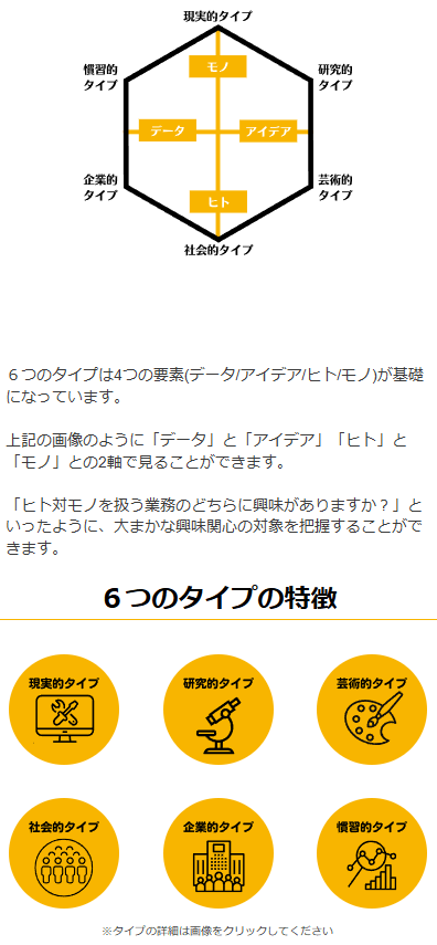 ミズカラくん先ほど紹介した、「RIASEC」に基づいて作られている診断。