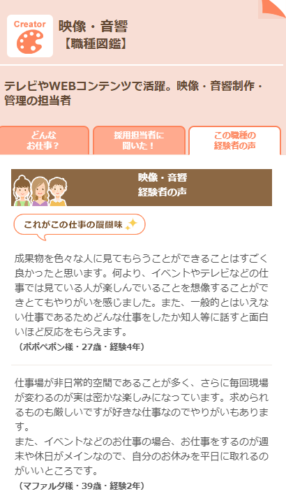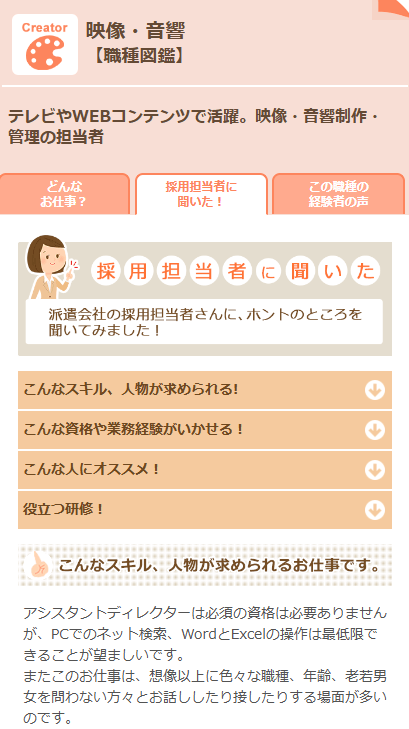 分野だけでなく、以下のような仕事の詳細な情報まで載っているのが特徴。