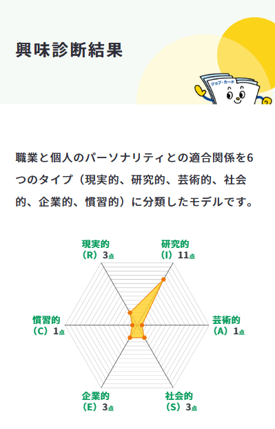 興味の方向性だけでなく、性格の傾向も知れるので、非常に参考になりますね。