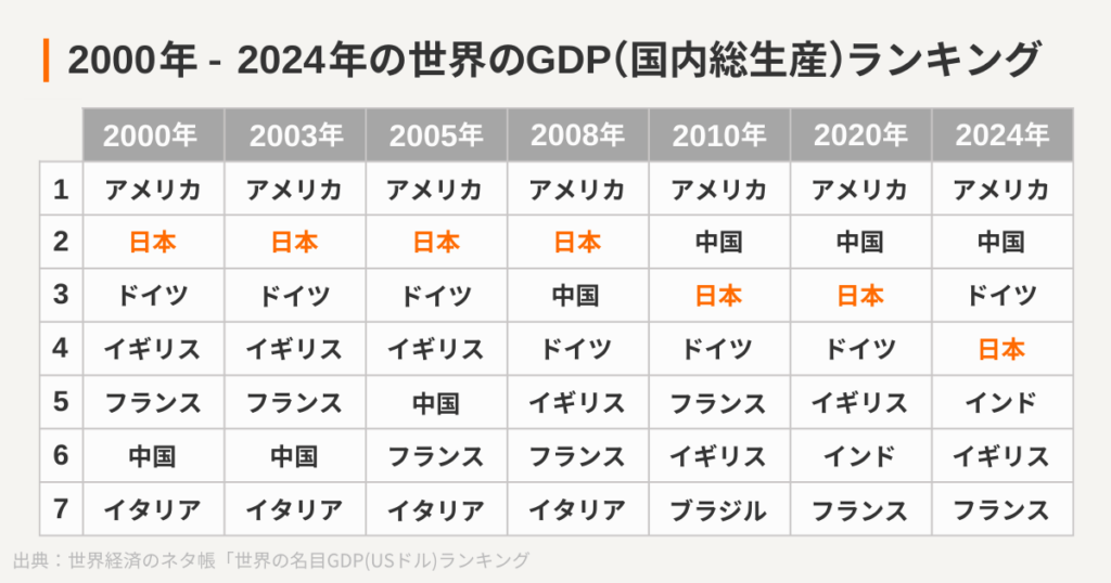 高度経済成長期を経て、世界の先進国の仲間入りをした日本。経済的・物質的な豊かさを享受し、世界GDP(国内総生産)ランキングでも上位を常に張る経済大国になった。